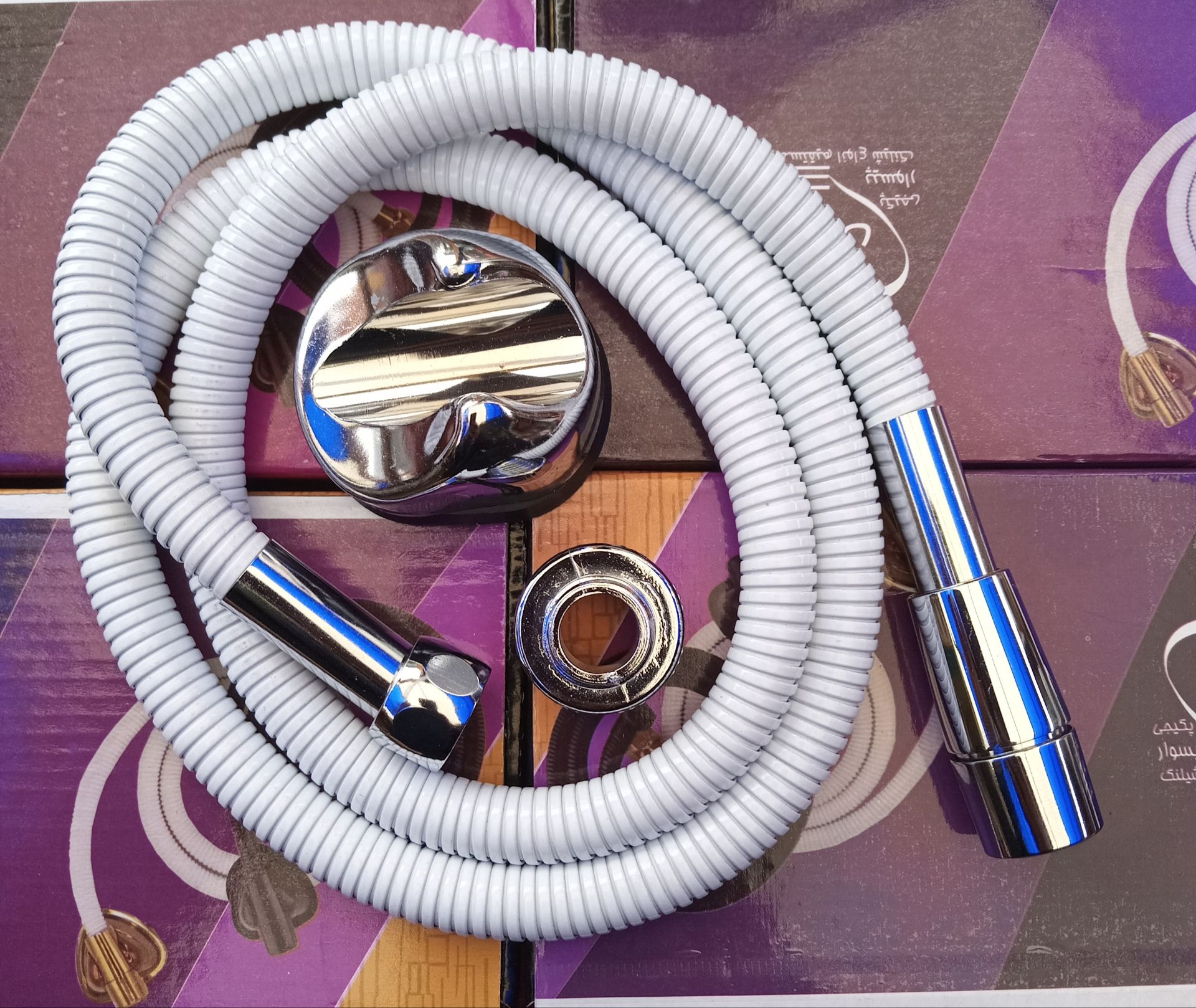 شلنگ آفتابه ای سفید کروم با اتصالات برنجی۲۰۰٬۰۰۰ تومان