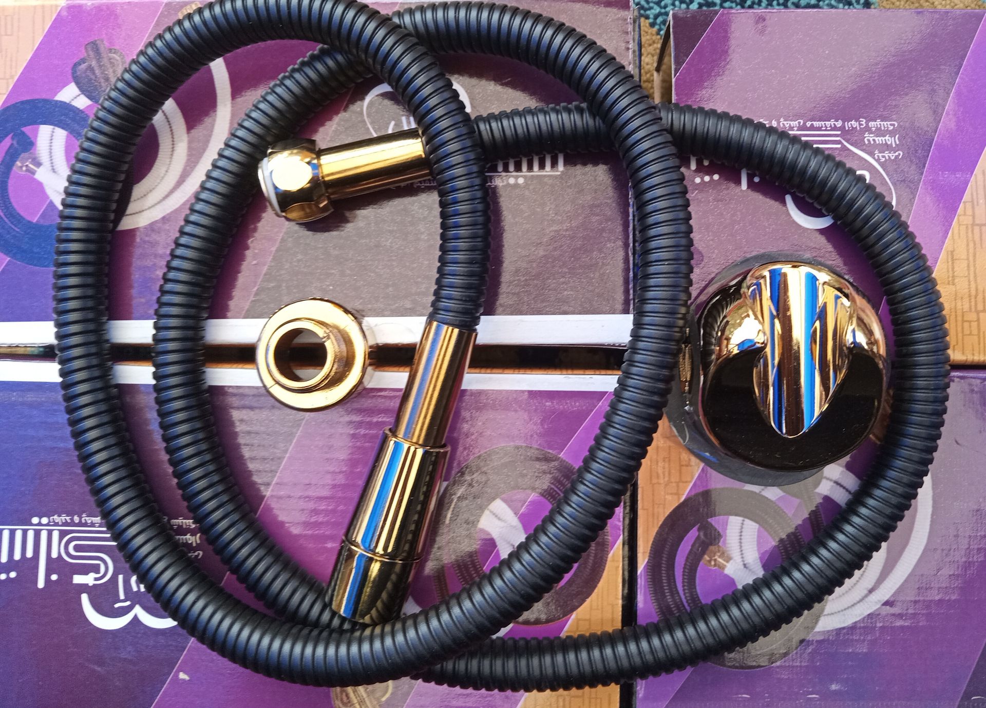 شلنگ آفتابه ای مشکی طلایی اتصالات برنجی۲۰۰٬۰۰۰ تومان